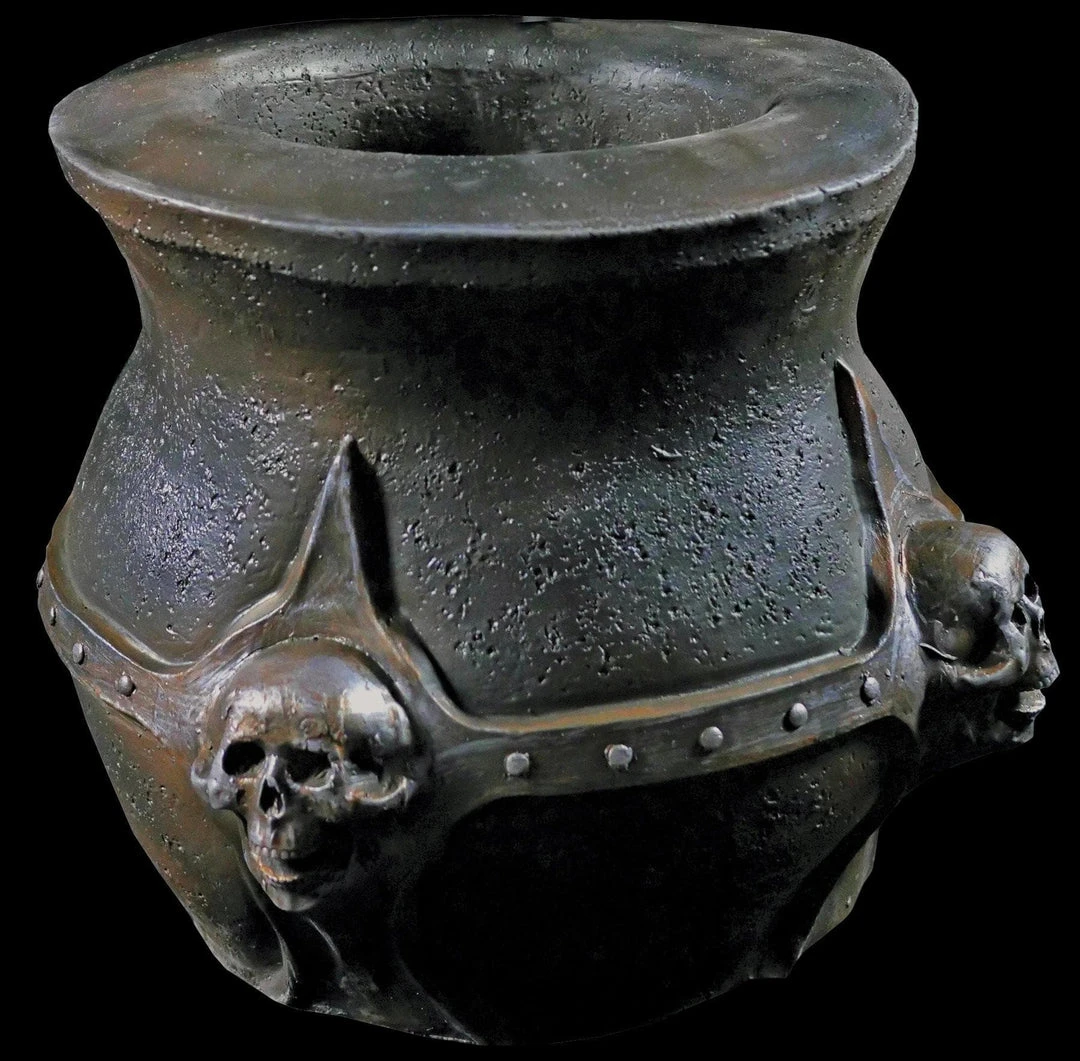 What spells and potions can you conjure up this with this high-quality witch’s cauldron? This unique cauldron prop is 14 inches in diameter and made from foam-filled latex painted to look like a thick iron cauldron with molded decorative skulls on the outside. Cauldron can be both a classic Halloween decoration and container for candy! Boxed dims: 16x16x16